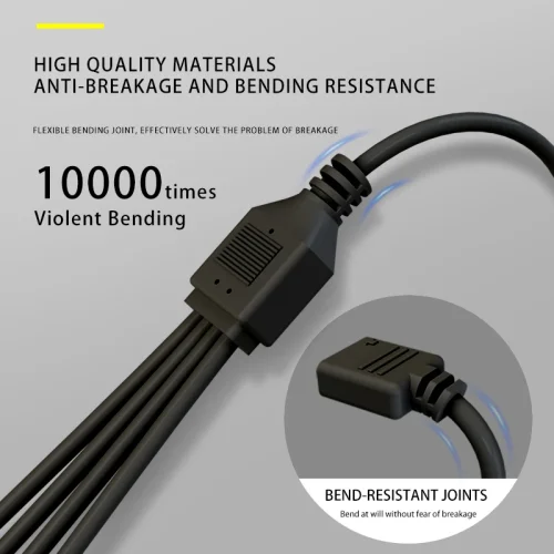 Feature: 1. Durable and Flexible Design: The cable is made with high-quality materials to withstand stretching and bending, ensuring a long-lasting and reliable connection. It is also soft and easy to bend, making it ideal for cable management. 2. Two/Three/Four Pin Connector Options: The cable comes in two colors (black and white) and offers multiple pin connector options, allowing users to easily connect to their ARGB interfaces without compatibility issues. 3. Perfect Length for Most Systems: With a length of 300mm (+/- 10mm), this cable is the perfect length for most computer systems, making cable management easier and more convenient. 4. Modular Design: The cable comes with both male and female connectors that can be easily switched out, allowing for greater flexibility when installing and customizing lighting setups. 5. Universal Compatibility: This cable features a standard 5V 3-pin connector that is compatible with a wide range of ARGB products, including memory vests, light bars, and fans. This makes it an essential accessory for any PC builder or enthusiast. Note: ![]()