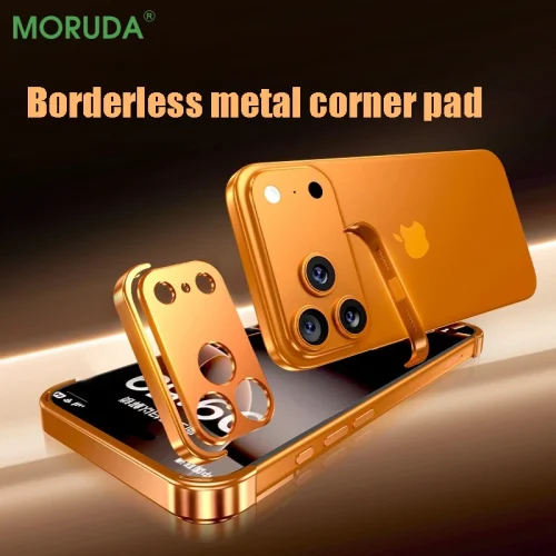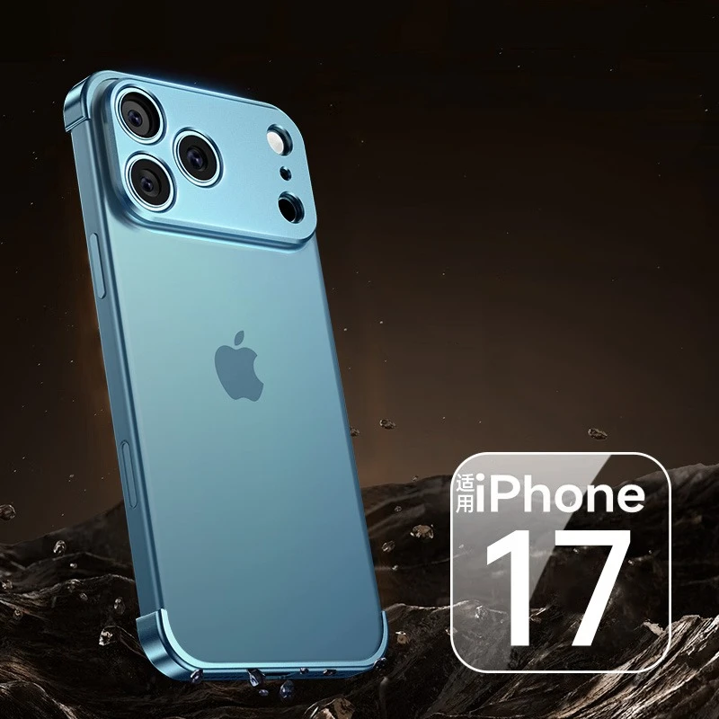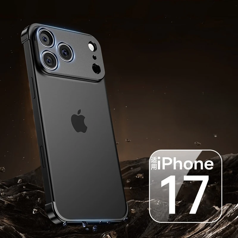 Frameless Alloy Bumper Creative Phone Case For iPhone 17 Air 16 15 14 13 12 Pro Max Plus 17pro Shockproof Metal Corner Pad Cover
