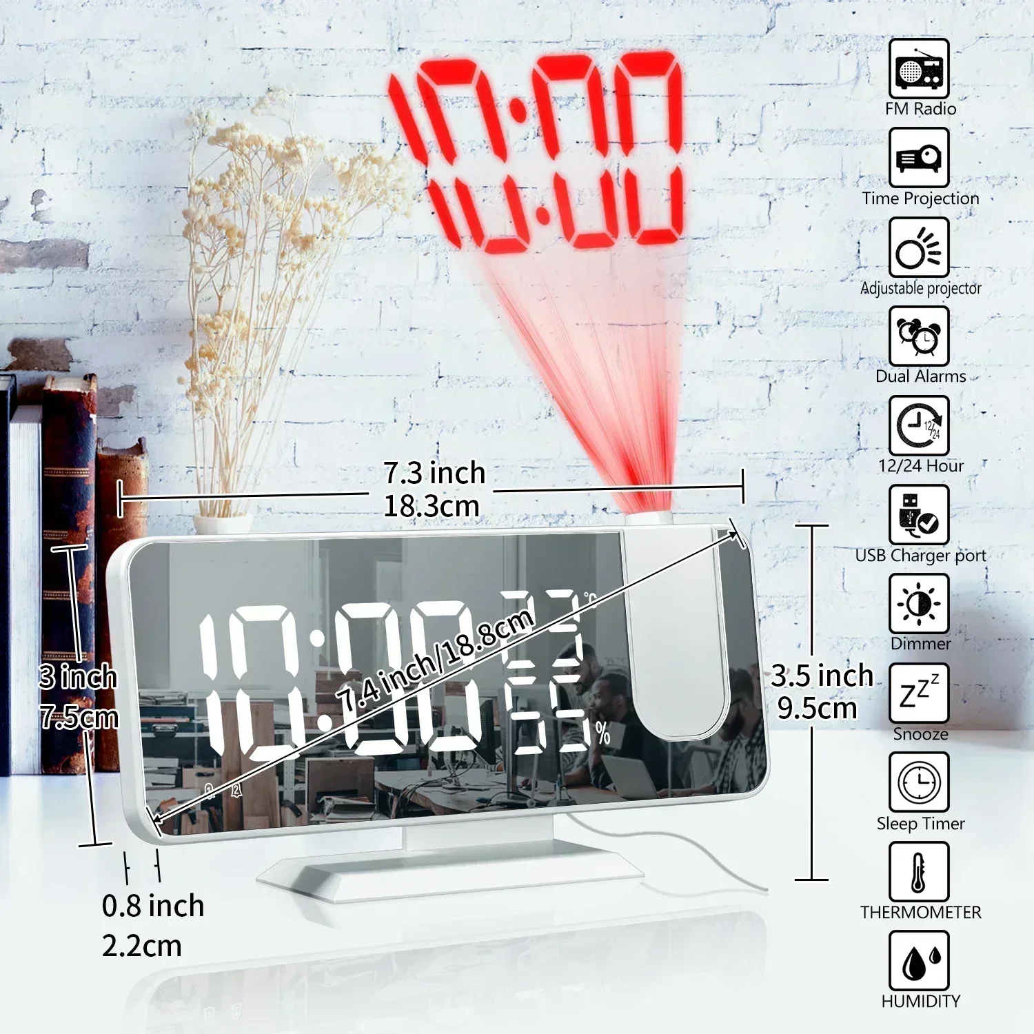 Radio LED Digital Smart Alarm Clock Watch Table Electronic Desktop Clocks USB Wake Up Clock with 180° Time Projector Snooze