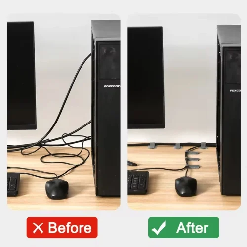 【Magic Tape Back Adhesive】: Equipped with a strong magic tape back adhesive, our cable organizer securely attaches to any smooth surface, such as desks, walls, or nightstands. Simply peel off the protective film and press the organizer firmly in place .