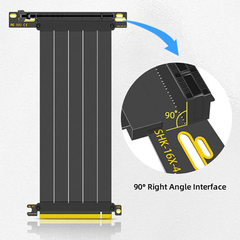TEUCER PCI-E 4.0 X16 Riser Cable Video Card Extension Shielded Flexible 90° Mounting GPU Extension Cord Black/White