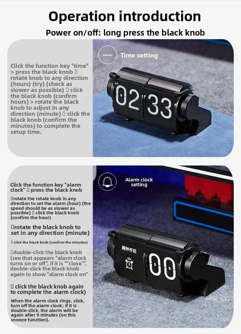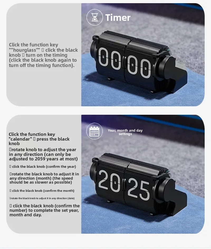 1. Multi Function Design: This flip desk clock integrates a timer, alarm, calendar, and time display, making it ideal for everyday use. Its comprehensive functions help you manage your time effectively and improve productivity.